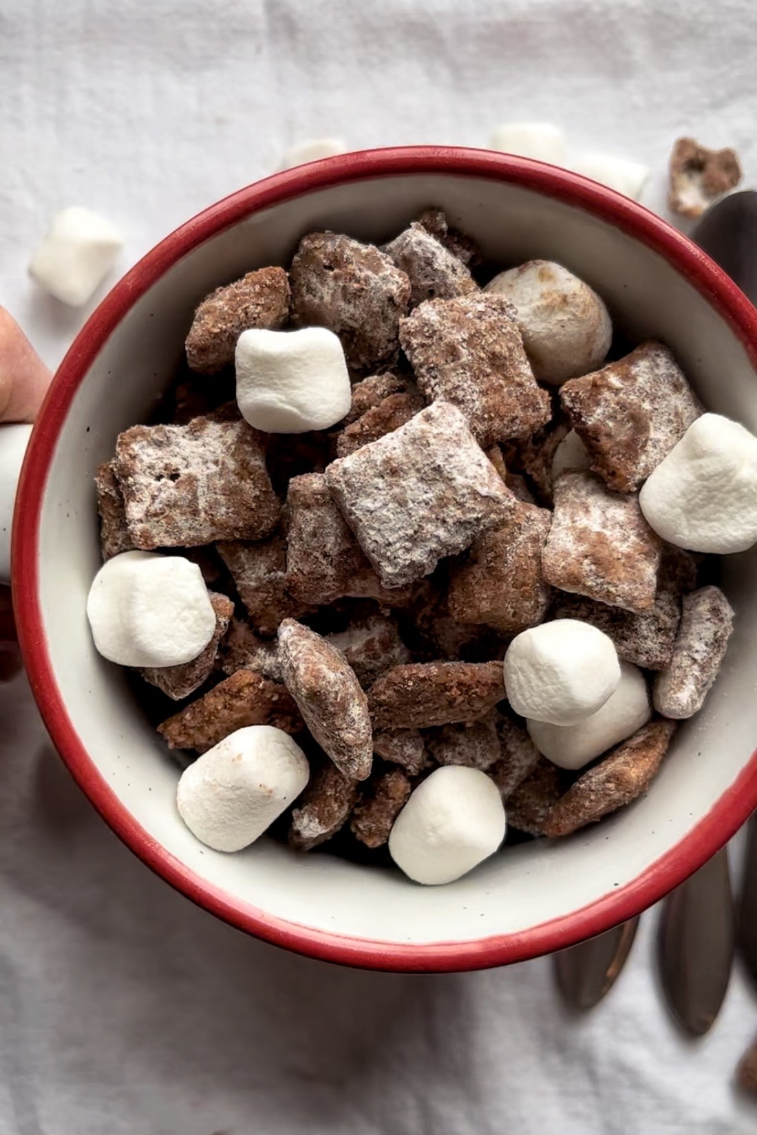 Hot Chocolate Puppy Chow is just a fun little twist on the traditional recipe. I love taking any traditional recipe and putting a festive twist on it. I can't just make this and have it around at my house because I have no self-control and just keep eating it, it is so good! This recipe … Continue reading Hot Chocolate Puppy Chow