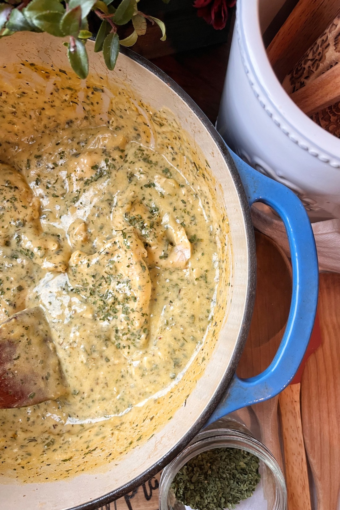 I am pretty much sold on any "one pot" meal. This Creamy Ranch Chicken seals the deal because the leftovers are just as good the second and third time. There is plenty of sauce to keep the chicken from drying out. Make some pasta and top it with this chicken and sauce and you have … Continue reading Creamy Ranch Chicken