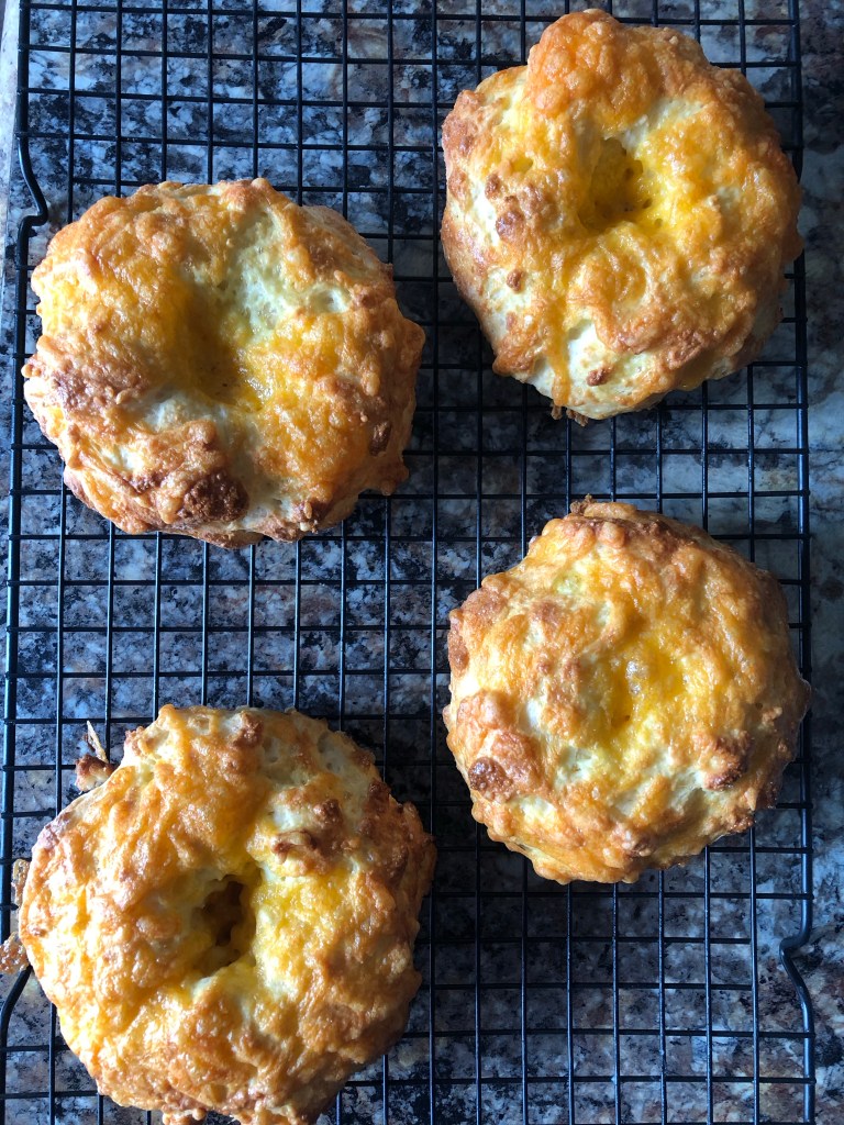 I’m thinking I will be making these bagels ahead of time for camping trips this summer. They are just too easy and too good. They really are fool proof too. I have tried a few recipes now for cheddar bagels and have tweaked it to finally get the best recipe! Make these into a breakfast sandwich or just enjoy with butter or cream cheese!