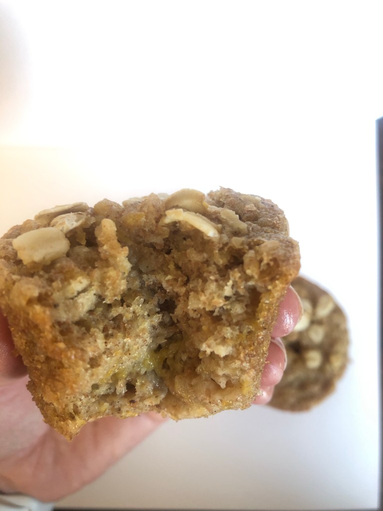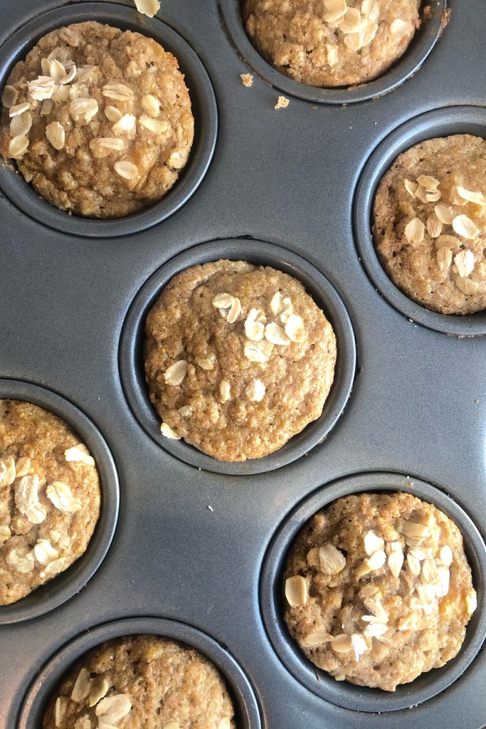- Pour batter into prepped muffin pan. Option to top with oats.