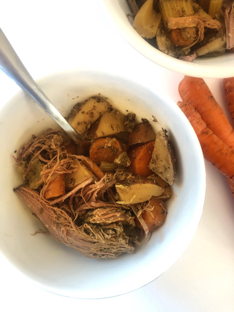 I have had my heart set on making a roast recently and I finally made my first one of this cold weather season, and it definitely won’t be my last. I am so happy that we still have carrots and red potatoes from our garden this summer to use up. There is just something about veggies with a little bit of dirt on them.