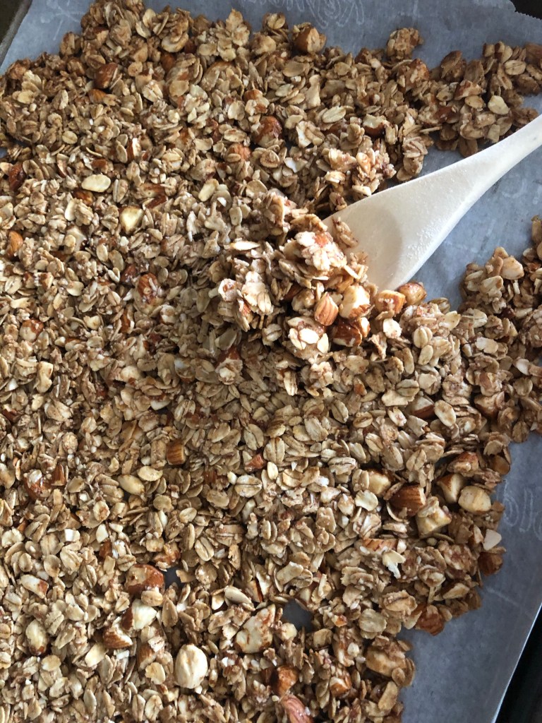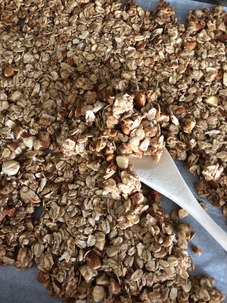 This granola is SO GOOD! It’s way better than any store bought granola. Plus, it doesn’t have any of the bs that comes in store bought granola. It consists of 6 only ingredients.