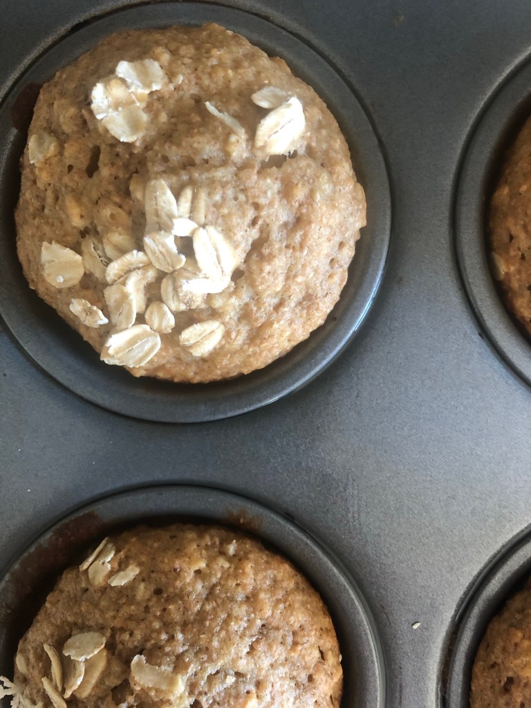 - Pour batter into prepped muffin pan. Option to top with oats.