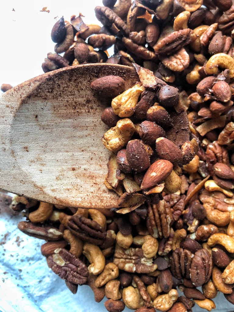This is such an easy healthy snack that takes hardly any time to throw together and it’s so much more delicious than any store bought trail mix. Not to mention cheaper. I buy all my nuts in the bulk section at Winco. It is the cheapest way to buy them.