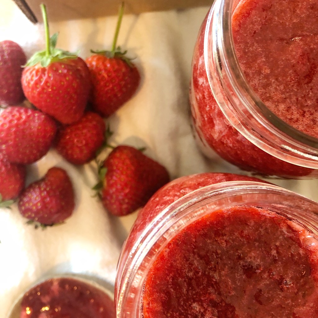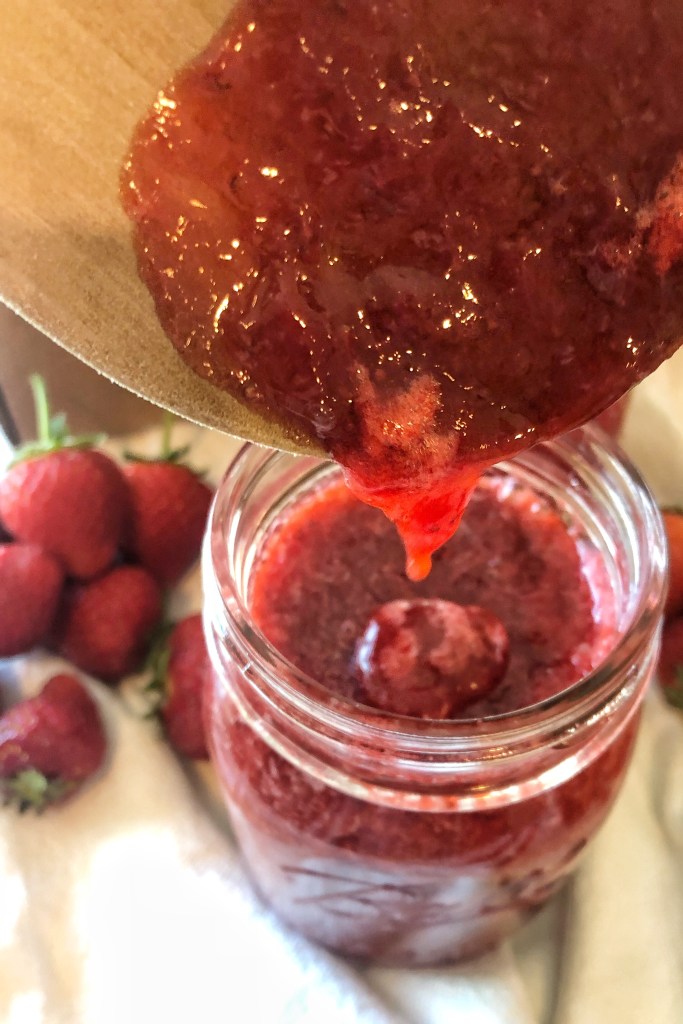 What says summer more than fresh picked strawberries? Maybe fresh strawberry jam? Either way this recipe is crazy easy and crazy delicious! No pectin, no blending and only three ingredients. I love when I can make something and store it for later. It’s like having a little bit of summer stored up in a jar for the winter. Of course I always keep one freshly made jar in the fridge to enjoy now. It’s finger licking good!
