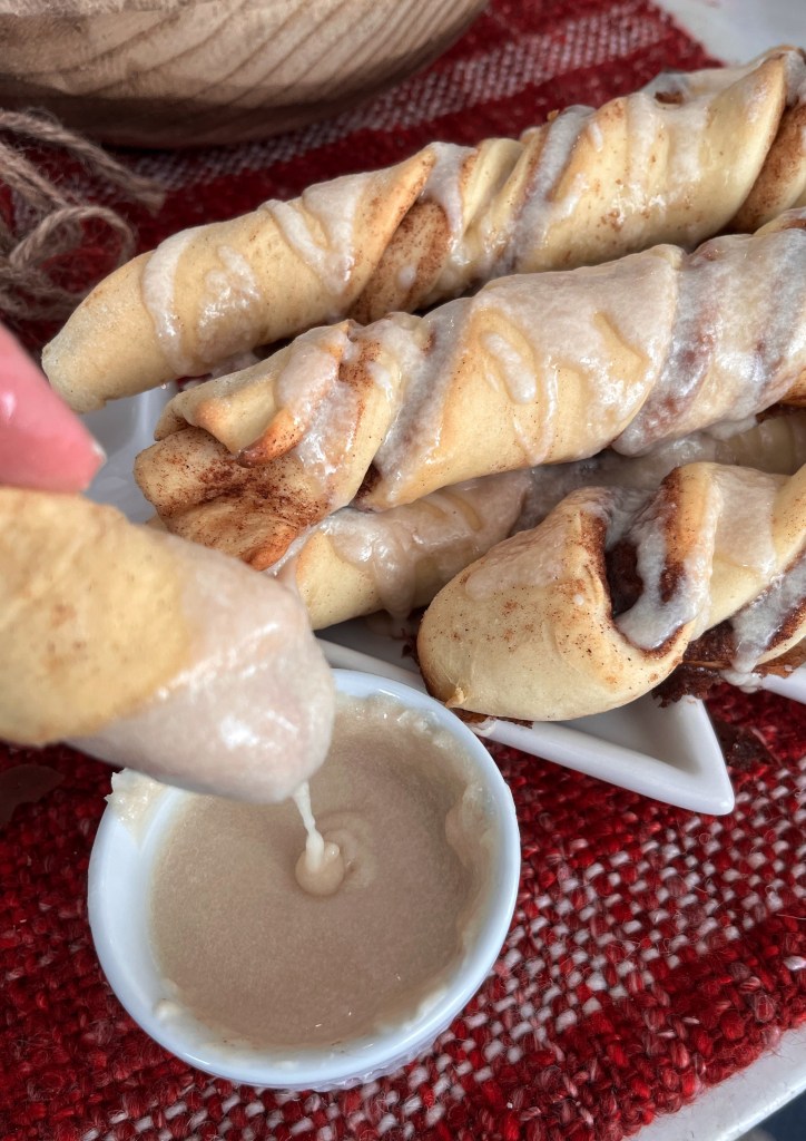 - You can either drizzle icing over your cinnamon twists or place in a bowl for dipping.