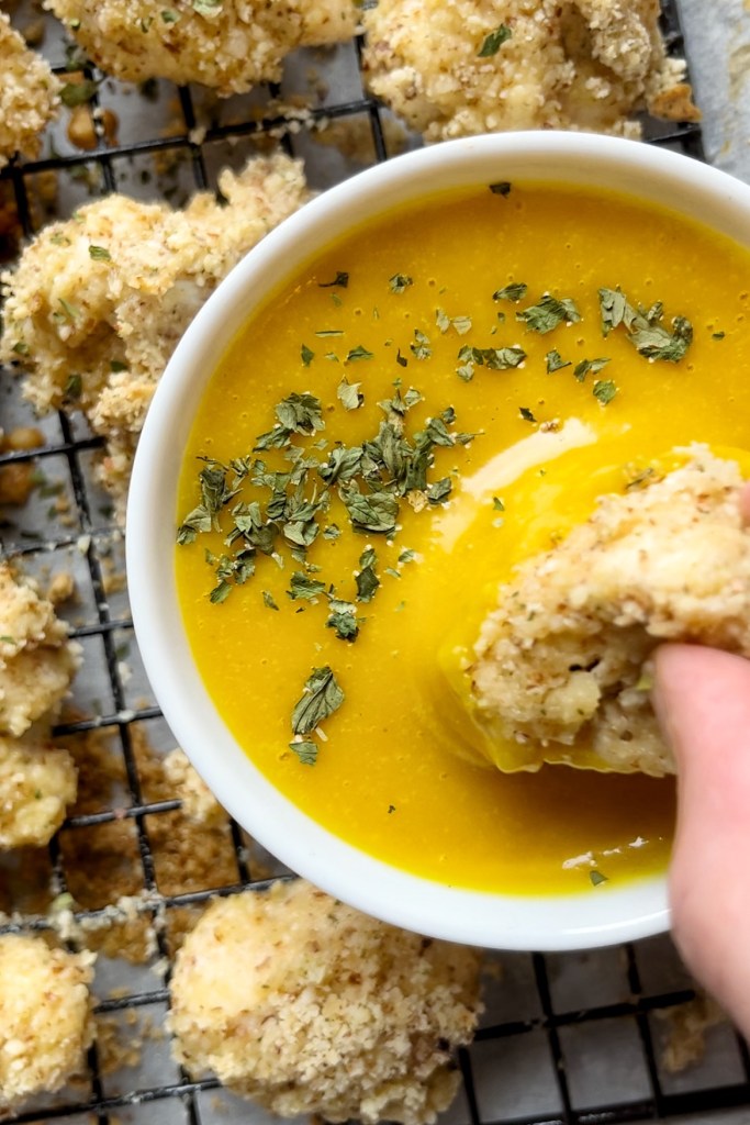 Who else can get down on some chicken nuggets? I decided I needed something that felt a little less guilty and that is how “Healthy-ish Parmesan Chicken Nuggets” came about. But what is a good chicken nugget without some awesome dipping sauce? Honey mustard is where it is at. It takes all of 2 minutes to throw together the sauce and it is the best part of the whole meal. I always make extra sauce because everyone needs extra sauce always! This recipe can be whatever you want it to be. Is it dinner? Is it an appetizer? It can be both! It is a great option to bring to a party. It is the perfect finger food.