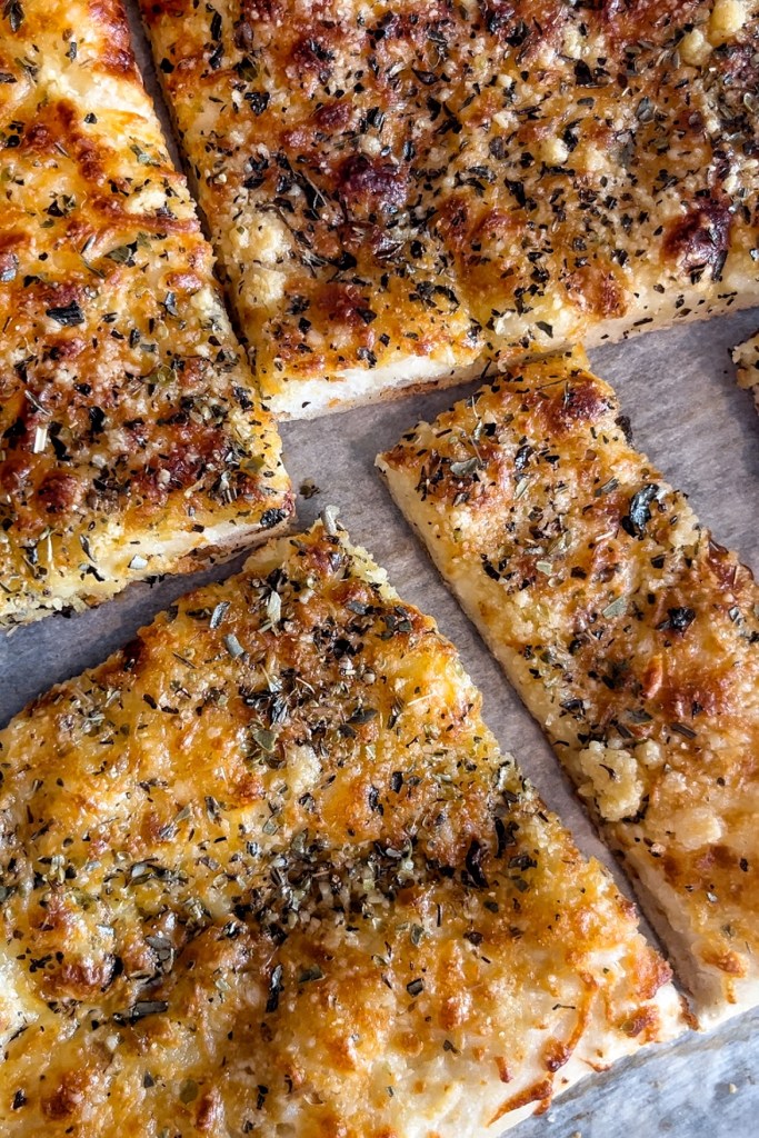 For the dough it makes enough to make two sheet pans of bread sticks *If you want to only make one sheet pan of cheesy bread, when you split the dough into two make one into French Bread. Click here for my French Bread Recipe*