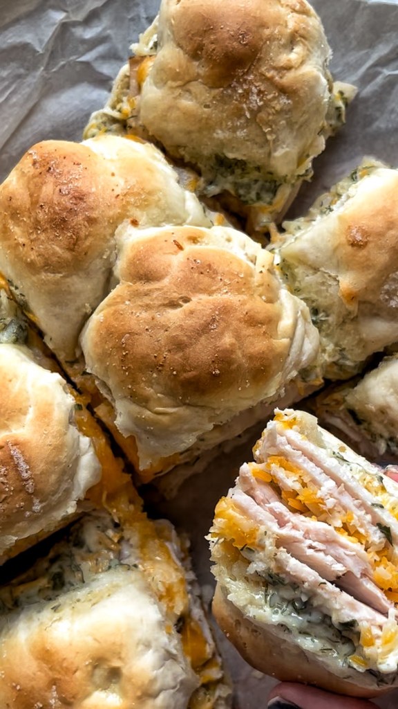 Good appetizers and good company, two of my favorite things. These Turkey Cheese Sliders are ones you have to save. I have made them for dinner and as an appetizer and they were a hit for both! It is the herbed mayo that really takes them up a notch. If you are looking to switch up your appetizer menu from the traditional dips, these are the perfect alternative. Friends and family will most definitely love you more for bringing these. I love to make my rolls homemade but store-bought work just as great, too! If you are thinking about making your own rolls, I want to encourage you to try it out!