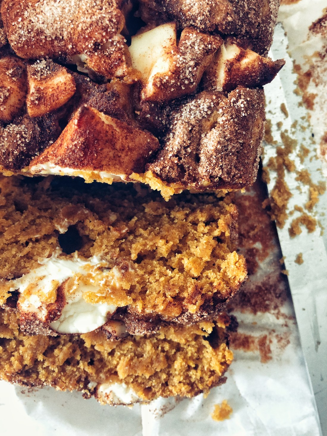 |Pumpkin Bread with Chai Cream Cheese Frosting|